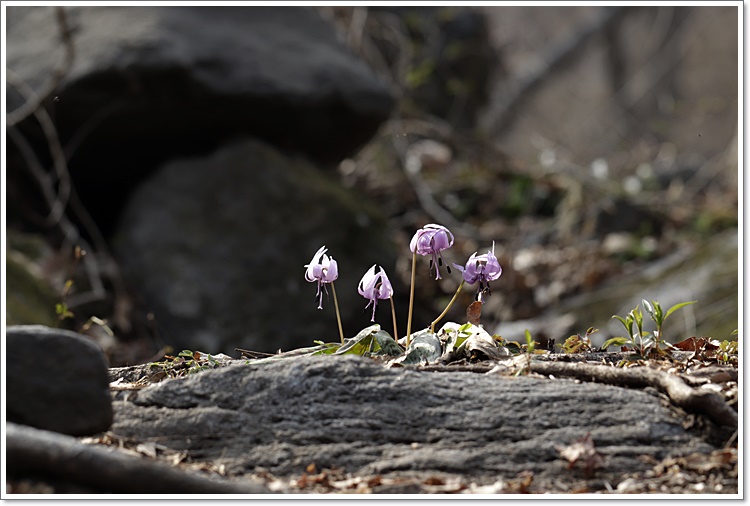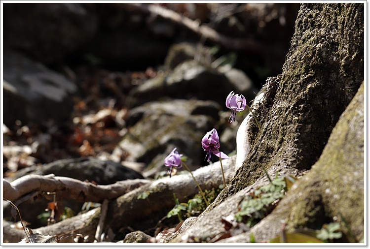 얼레지도 한껏 보랏색 치마를 걷어올렸다.
