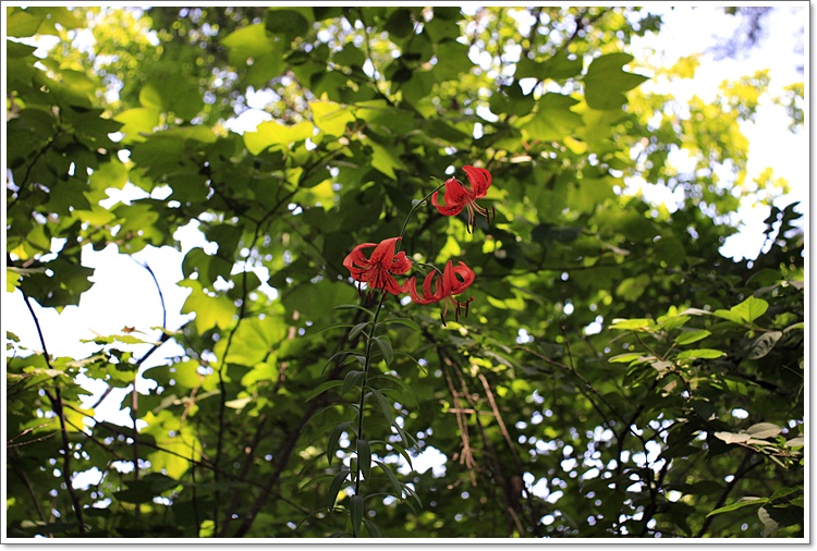 초록으로 우거진 숲으로 털중나리가 여기저기 피어 심심치 않고,