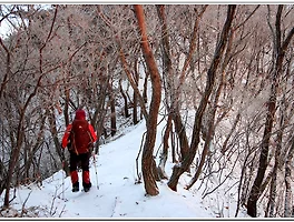 길은 점점 미끄러워지고,눈발은 점점 강해진다.장군봉으로 오르는 마지막 나무계단을 설설기며 오른다.